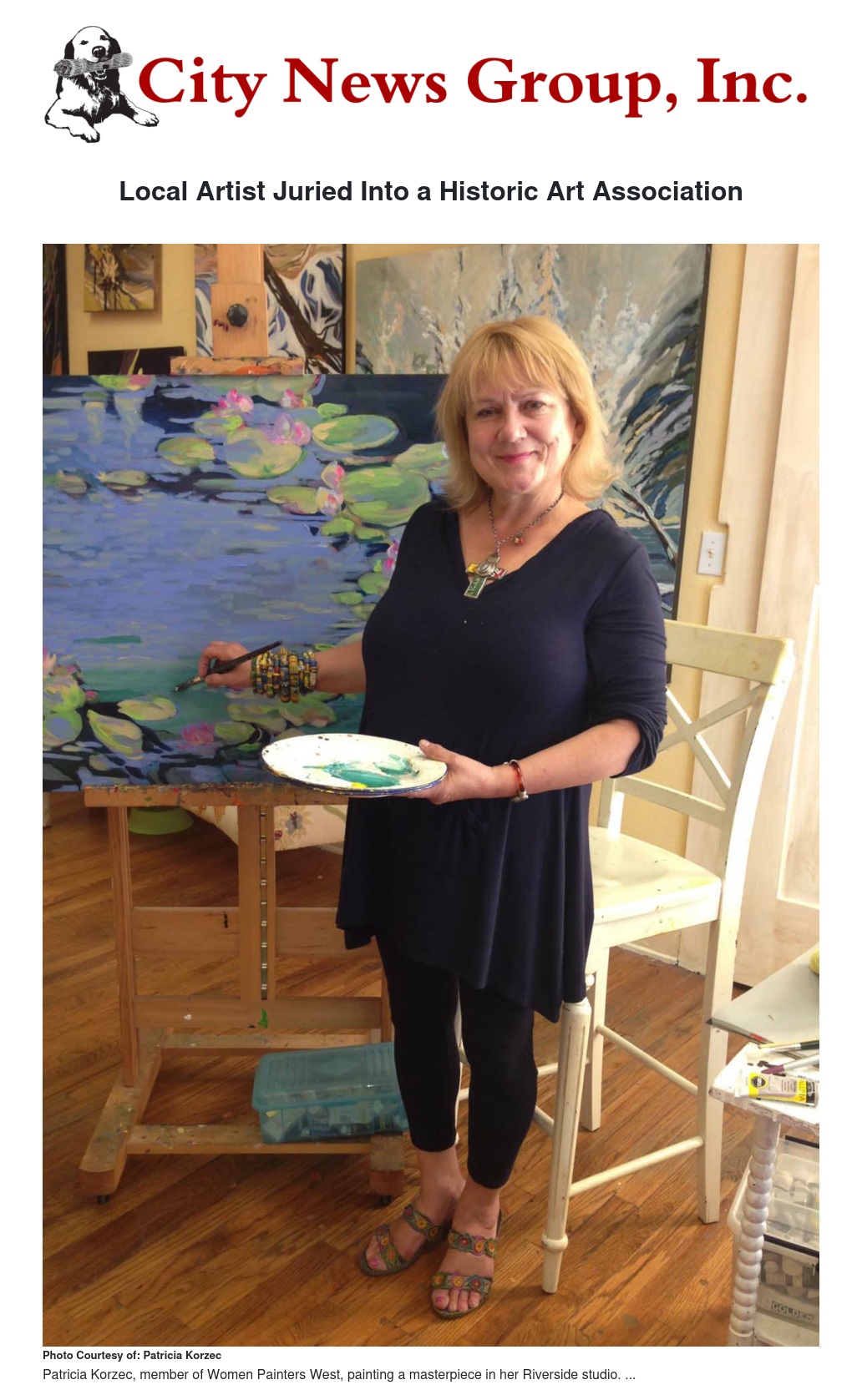 Local painter, Patricia Sablak Korzec was recently juried in as an Associate Member of Women Painters West. New members are selected annually through a juried selection process.