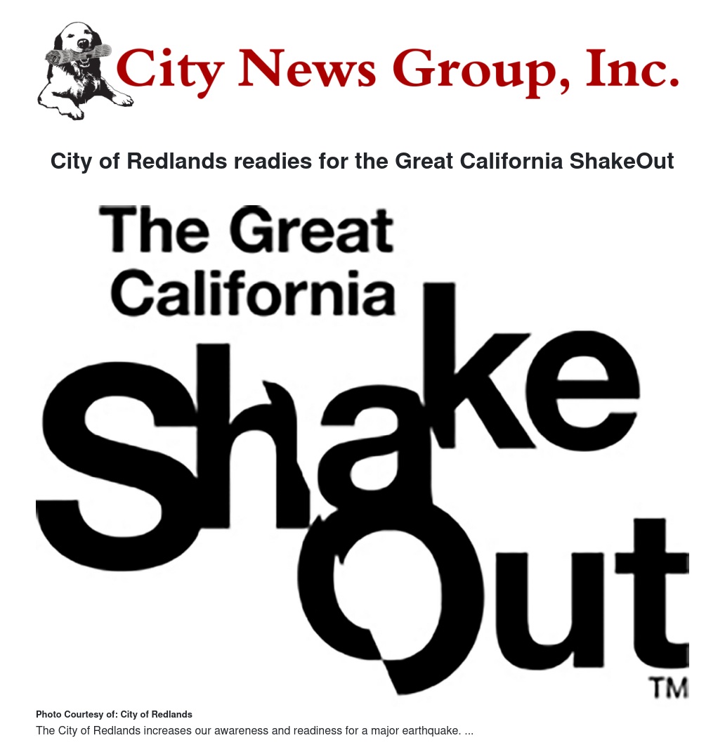 The City of Redlands will join millions of Californians that day to increase awareness and readiness for a major earthquake.