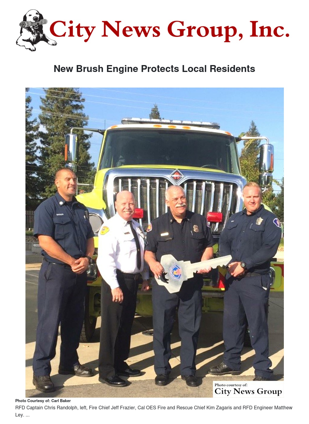 In October, the Redlands Fire Department took delivery of a new Type-III wildland fire engine transferred from the Governor’s Office of Emergency Services at no cost to the city.