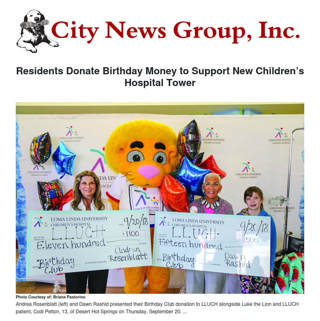 Residents Donate Birthday Money to Support New Children’s Hospital Tower by Briana Pastorino - City News Group, Inc.