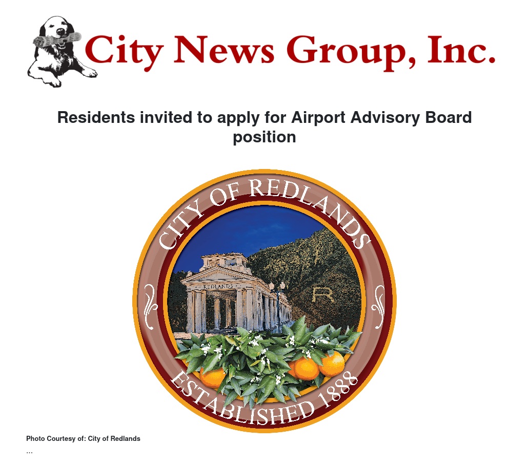 Residents invited to apply for Airport Advisory Board position by City of Redlands - City News Group, Inc.