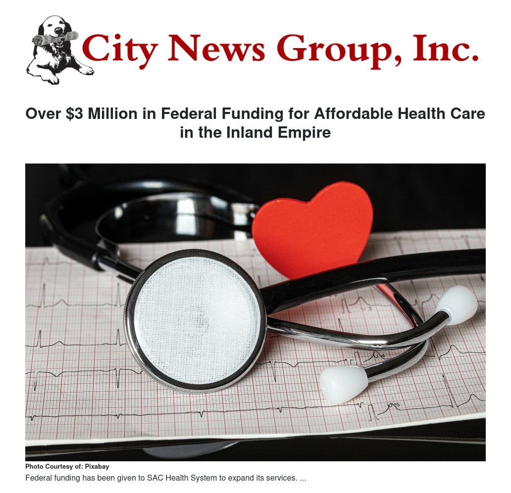 Over $3 Million in Federal Funding for Affordable Health Care in the Inland Empire by Sarah Wells - City News Group, Inc.