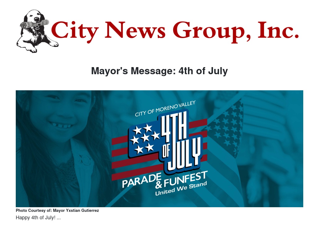 Our community has missed out on a lot because of the Pandemic. We have had to forgo visiting family, friends, and loved ones. We've even had to forgo important events to keep each other safe. As we head toward a new normal, I am thrilled to bring back a few events I know we all have missed. This year's Fourth of July Parade and Fun Fest is shaping up to be our best!