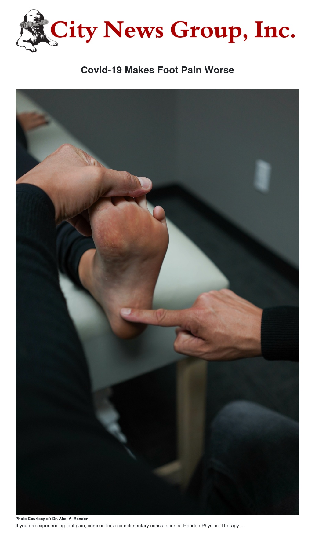Covid-19 Makes Foot Pain Worse by Dr. Abel A. Rendon, PT, DSc, DPT - City News Group, Inc.