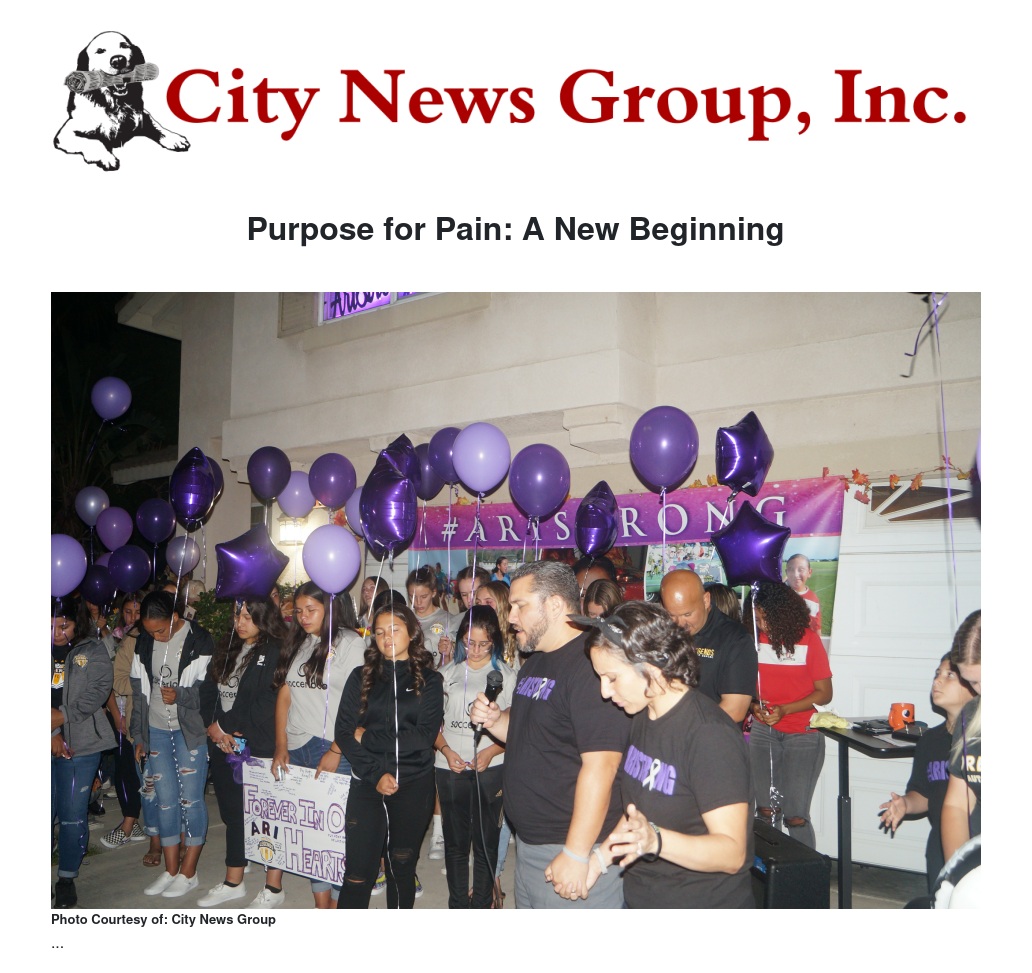 At a time when most parents would be falling apart, the Villalobos family has shown tremendous strength and dignity and an overwhelming sense of hope. City News Group had the privilege to follow Ari’s plight from the very beginning and was invited to a prayer vigil and balloon release recently. Hundreds of Ari’s family, church and community members, and fellow athletes gathered in front of her home Wednesday, October 2nd in a show of love and support.  The vigil was organized by her coach and teammates of Legends, in order to honor a much loved and gifted young woman. The event was bathed in prayer and worship and an unexplainable peace was in the atmosphere. Ari’s parents Nikki and Chris spoke about their daughter and her vision for their future, “She was so selfless and giving that she wanted her brain and spine donated for research so that other parents don’t have to go through what Chris and I are experiencing,” explained Nikki. Ari donated almost every part of her body that she was able to so that others could live and have opportunities. She was always a giving person even after she went home to be with the Lord. One of her requests was that through this battle people would not feel sorry for her, but would come to the saving knowledge of Jesus. The first part of that was fulfilled on Wednesday evening in front the very home where she had been trained up in the things of Christ.