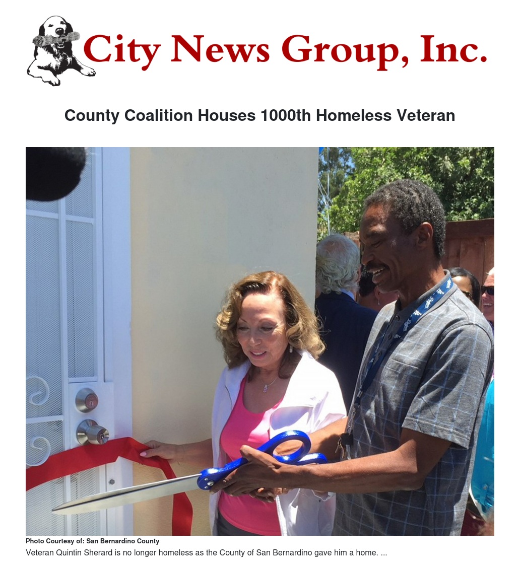 “The County of San Bernardino in partnership with the community made a promise three years ago to prioritize homeless veterans for housing. As Mr. Sherard moves into his new home today as the 1000th veteran housed by this initiative, he represents the continuing fulfillment of that commitment,” said Philip Mangano, former federal homelessness czar now working with the County’s CEO Office to implement the veterans initiative.