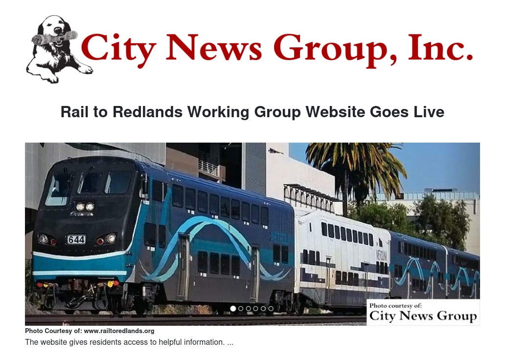 The Rail to Redlands Working Group announces the creation of its own Rail to Redlands website. The website gives residents access to committee members, latest news, project schedules, and other helpful information.