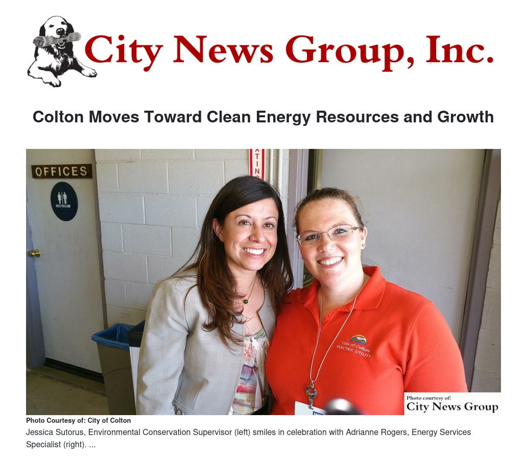“Colton is transitioning from coal-based (electricity) generation and is moving toward cleaner alternatives including wind, solar and hydroelectric generation,” said Colton Environmental Conservation Supervisor Jessica Sutorus. “We are making every effort to meet AB 32 goals.”