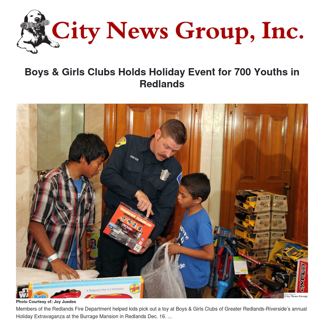 “Our community partners make it possible for us to give our members such a great holiday experience,” said Mark Davis, vice president of Boys & Girls Clubs of Greater Redlands-Riverside. “We couldn’t have done it without the support of those businesses, the fire department and volunteers.”