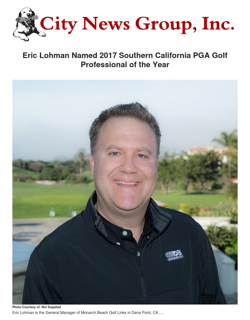 Eric Lohman Named 2017 Southern California PGA Golf Professional of the Year by Bryce Seiver - City News Group, Inc.