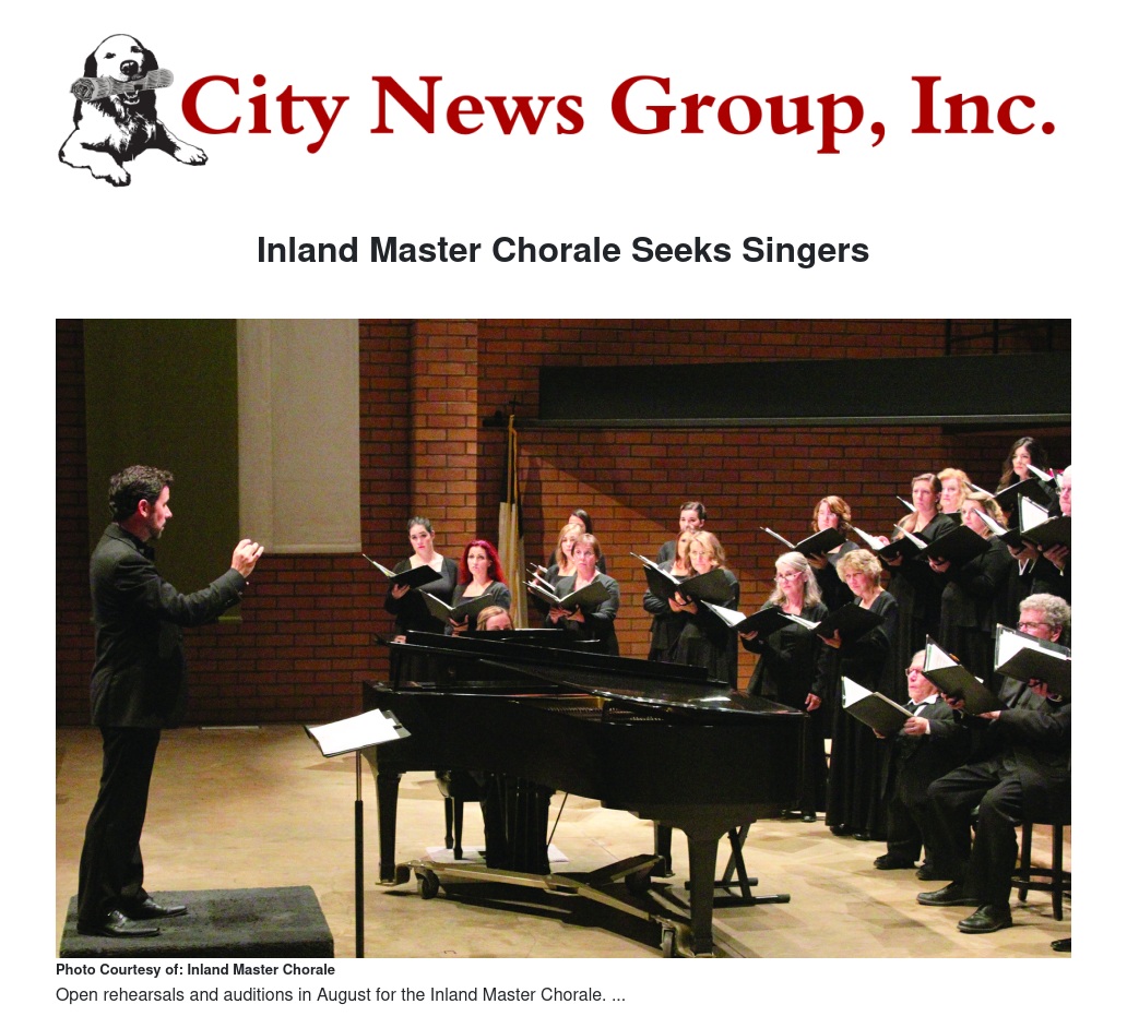 Inland Master Chorale Seeks Singers by Wendy Williams - City News Group, Inc.
