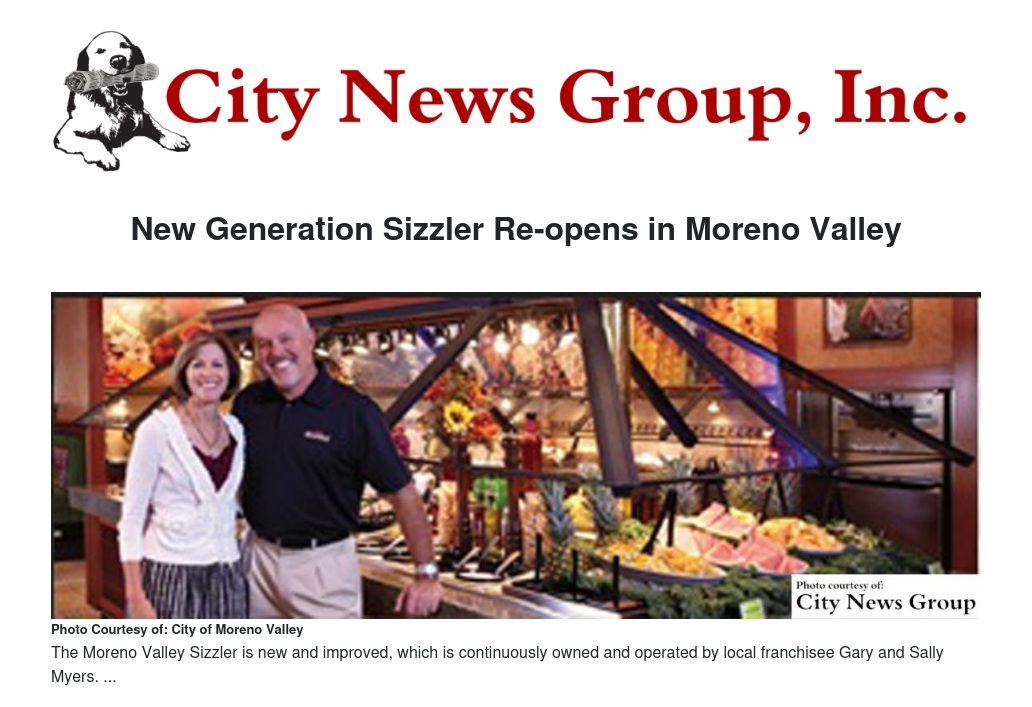 MORENO VALLEY >> The City of Moreno Valley celebrates the extreme remodeled and grand re-opening of the new generation Sizzler restaurant at the southeast corner of Perris Blvd. and Sunnymead Blvd. in Moreno Valley. The remodeled Moreno Valley Sizzler has an expanded dining room and now offers innovative approaches to the dining tradition that has been a part of the community since 1985.