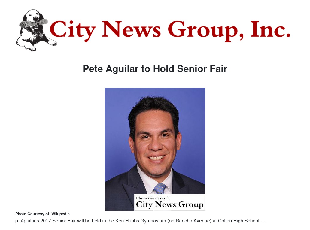 Pete Aguilar to Hold Senior Fair by Ariel Dun - City News Group, Inc.