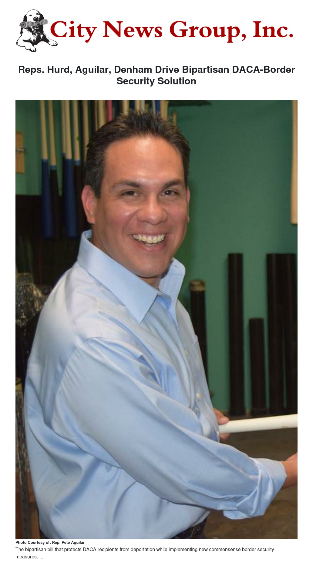Reps. Hurd, Aguilar, Denham Drive Bipartisan DACA-Border Security Solution by Parker Dorrough - City News Group, Inc.