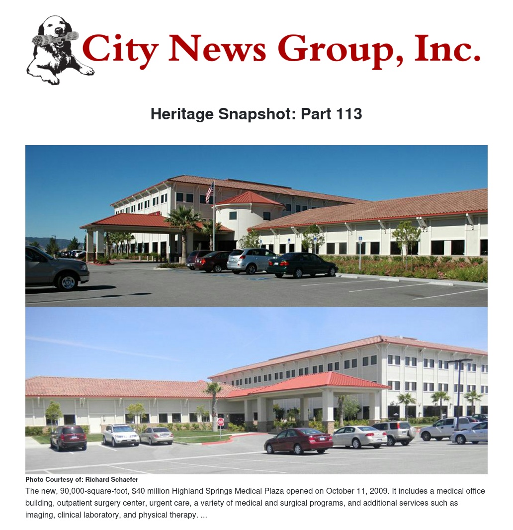The Highland Springs Medical Plaza now serves the residents of Beaumont, Banning, Cherry Valley, Cabazon, Calimesa, Yucaipa, and Oak Glen. Its Cancer Center includes a linear accelerator, its own drawing rooms for laboratory tests, and two compounding rooms where pharmacists can compound chemotherapy drugs and other preparations.