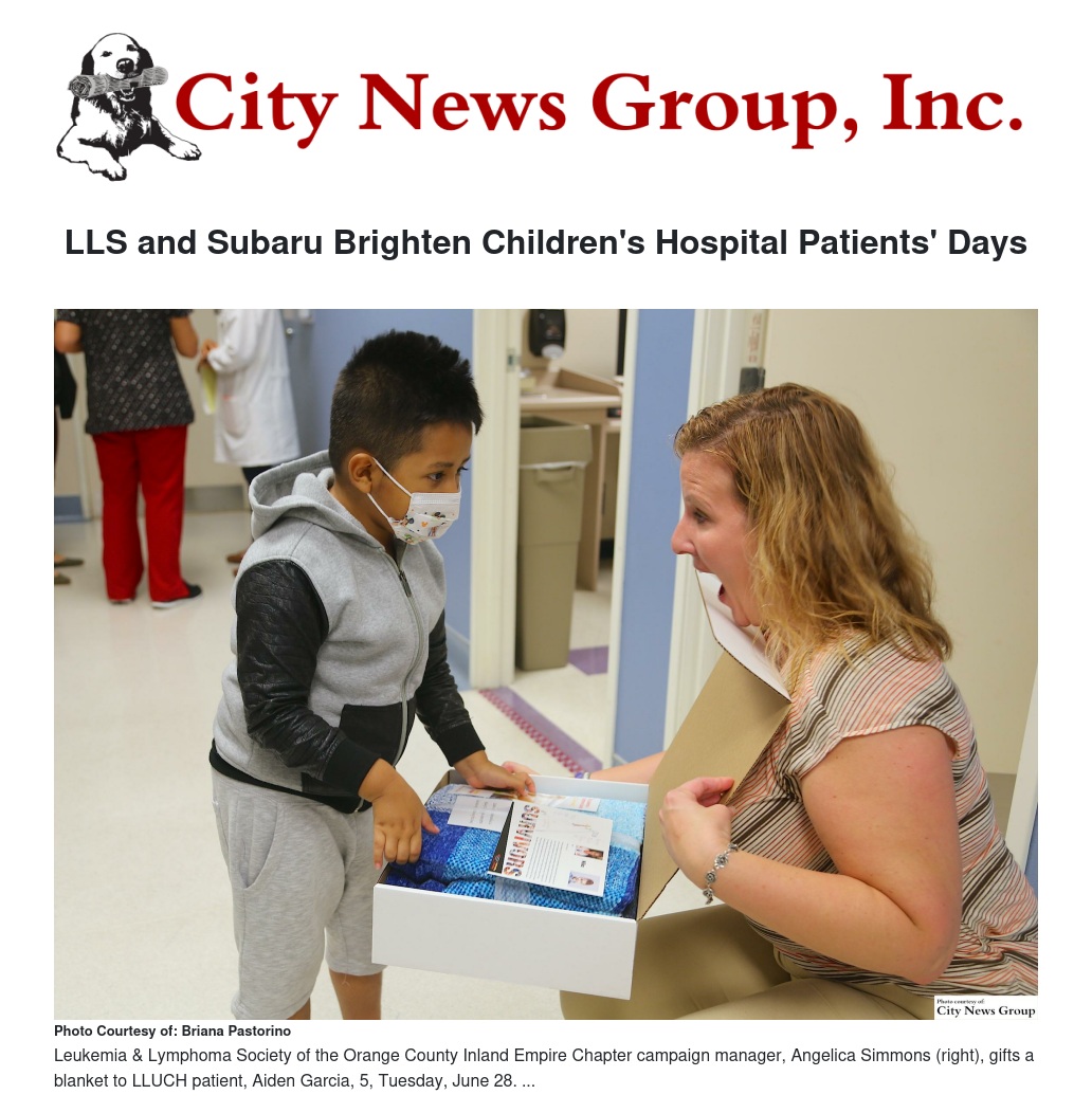 LOMA LINDA >> Members from the Orange County Inland Empire Chapter of the Leukemia & Lymphoma Society (LLS) stopped by the Loma Linda University Children’s Hospital (LLUCH) hematology/oncology Clinic Tuesday, June 28 to brighten the kids’ day. They delivered 60 blankets to the clinic.