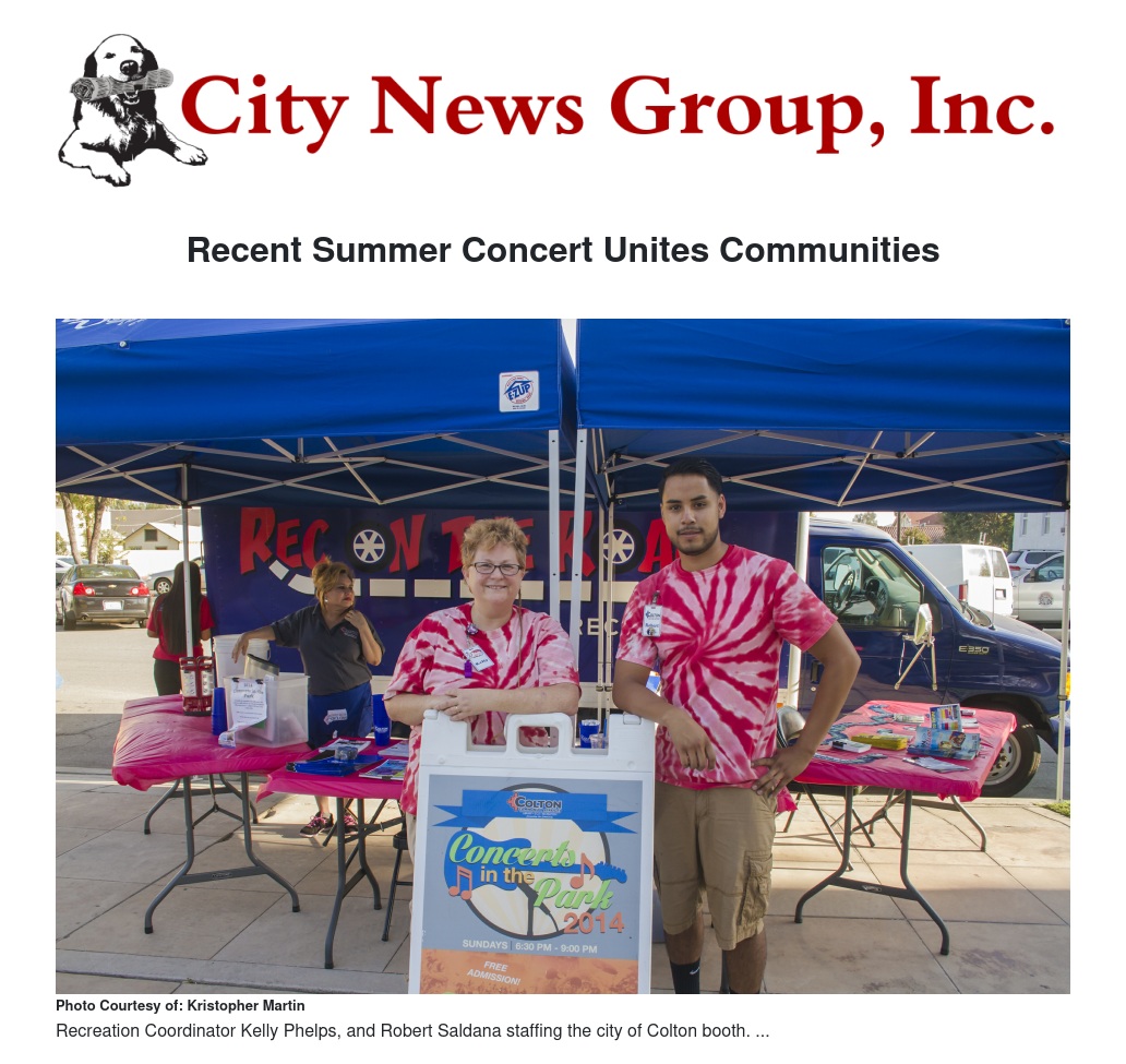 Colton Recreation Coordinator Kelly Phelps, explained that part of the reason that Colton enjoys such large crowds is that "Colton's Commissioners come out and join the community." Further, Phelps said, "Colton's concerts even draw people from other communities."