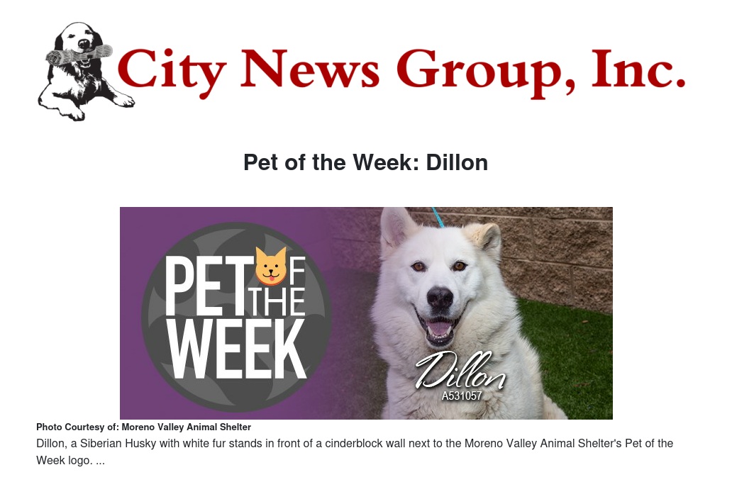 Pet of the Week: Dillon by Candace Briggs - City News Group, Inc.
