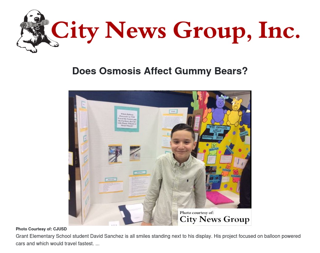 Grant Elementary School student Leslie Larios did her science project, asking herself "Does osmosis affect gummy bears?"