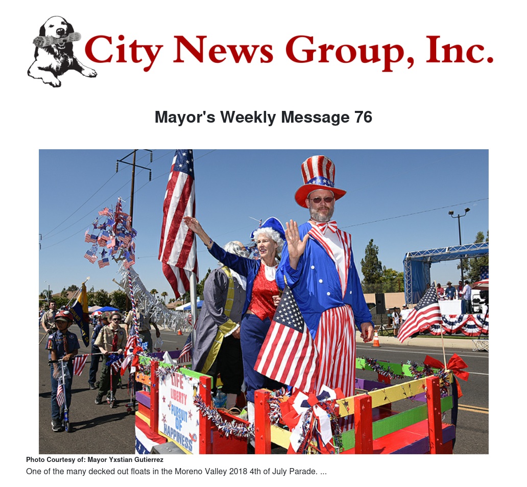 Mayor's Weekly Message 76 by Mayor Yxstian Gutierrez - City News Group, Inc.