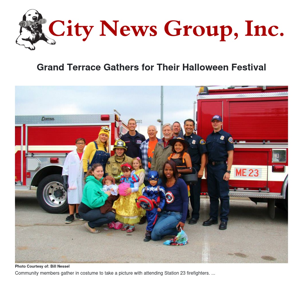 President of Grand Terrace Chamber of Commerce Sally McGuire said, “Thanks to Station 23 for coming out to support the Grand Terrace Halloween Festival. Everyone loves a firefighter!”