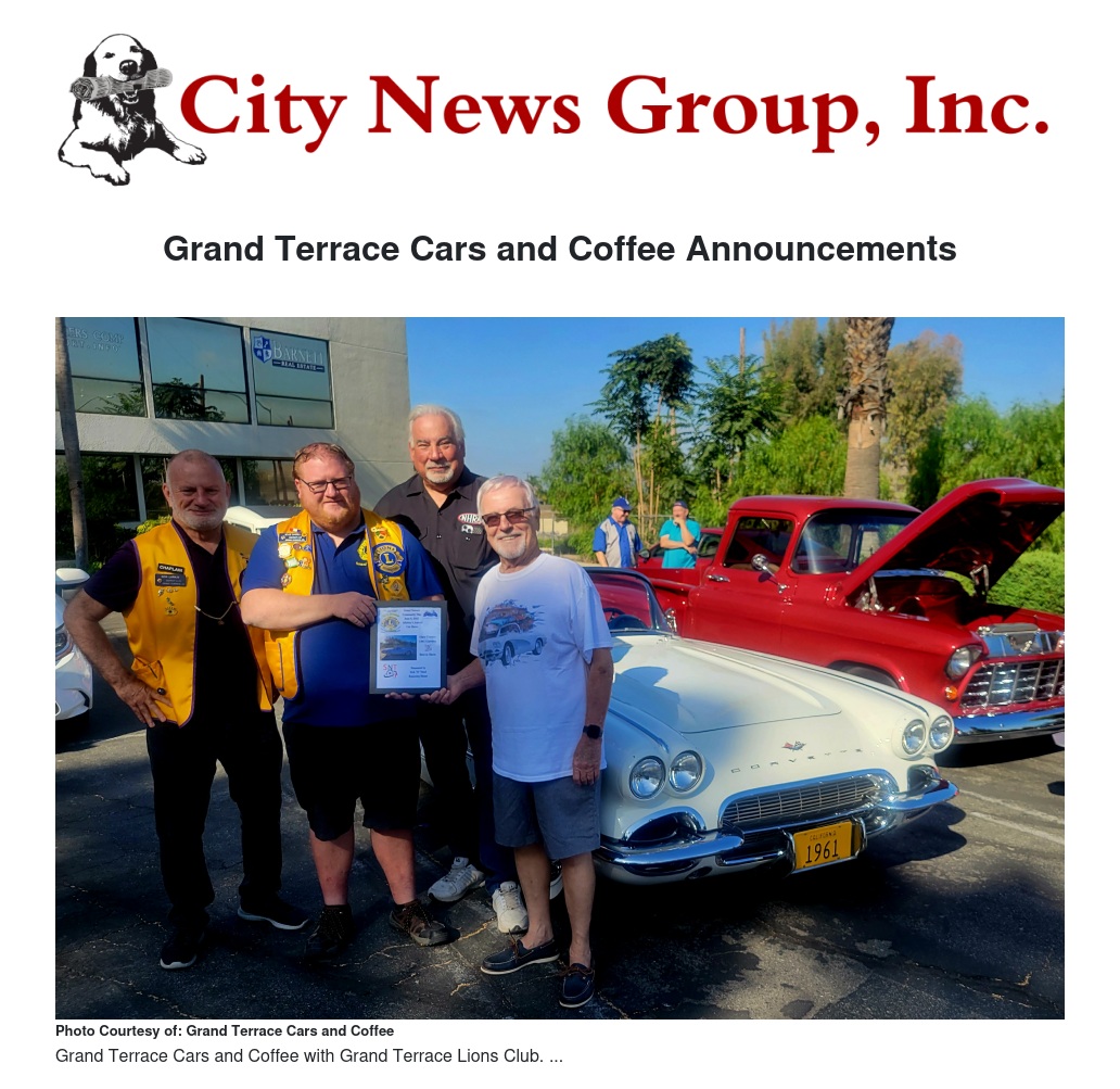 Grand Terrace Cars and Coffee Announcements by Luke Page - City News Group, Inc.