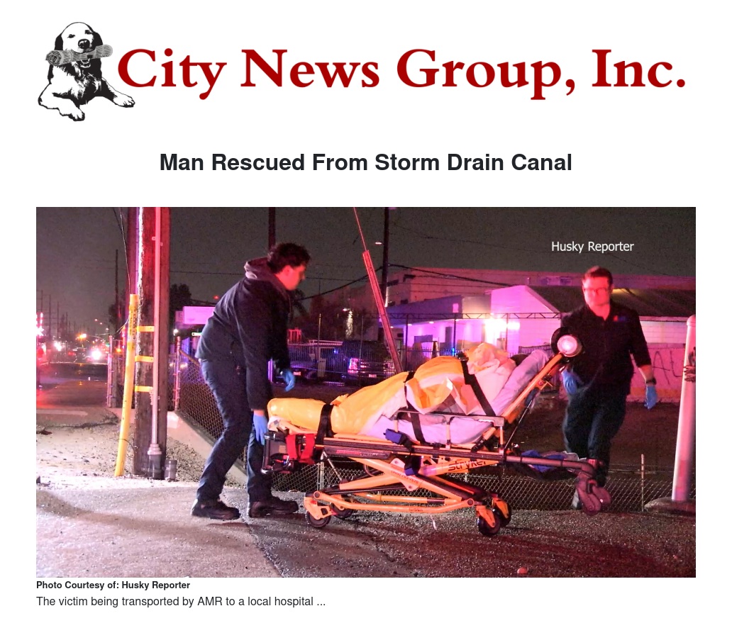 Man Rescued From Storm Drain Canal by AJ Benson - City News Group, Inc.