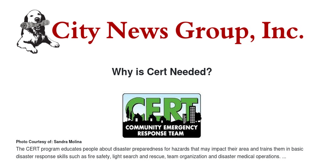 Last week, we introduced CERT, the Community Emergency Response Team. Why would we need such a program?