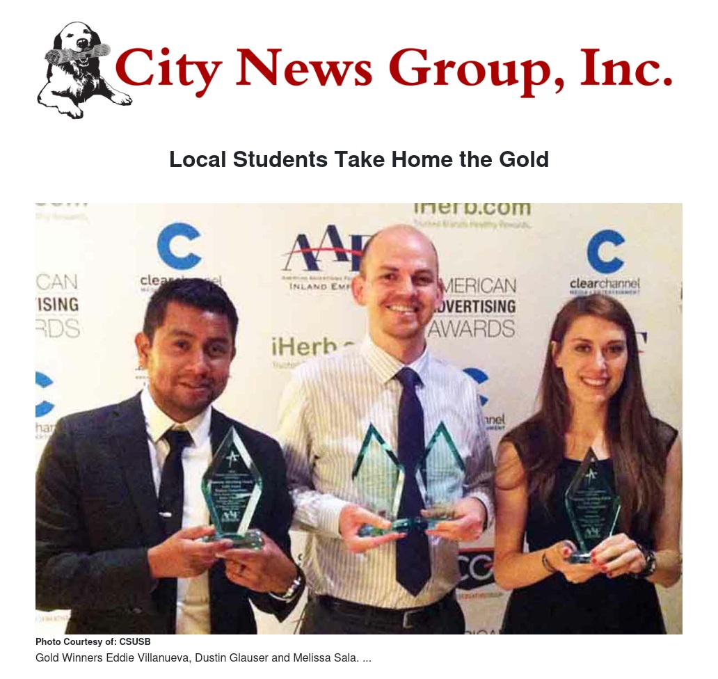 California State University, San Bernardino (CSUSB) students have grabbed the gold in a competition that saw scores of aspiring designers, from four academic institutions, put their best advertising foot forward.