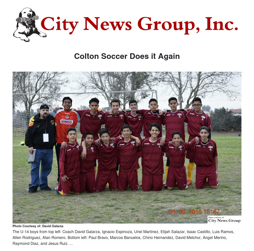 The U-14 boys proved to be the best in Cal South's District 5 making consecutive wins at the The Commissioner's Cup held in Temecula in December 2016, the President's Cup held in Apple Valley on Jan. 17, and then the Tournament of Champions held in Rialto Jan. 30-31.