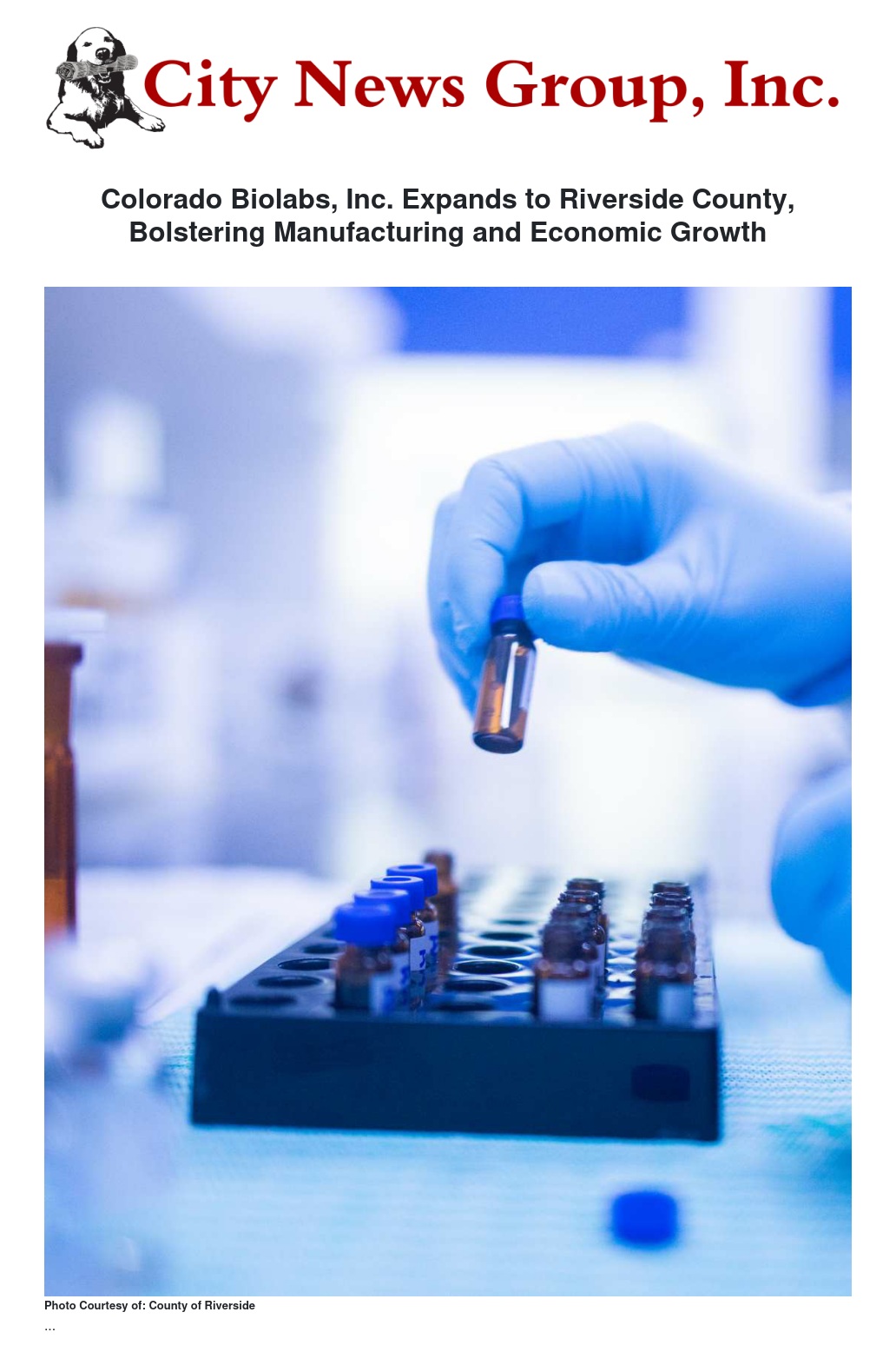 Colorado Biolabs, Inc. Expands to Riverside County, Bolstering Manufacturing and Economic Growth by County of Riverside - City News Group, Inc.
