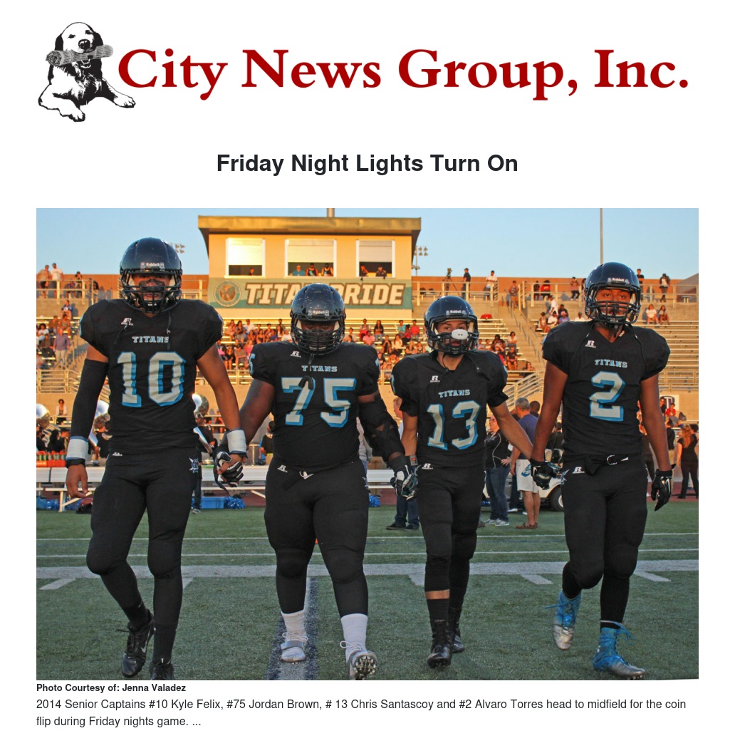 The large opening night crowd was excited to see what the 2014 Titans had since coming within two minutes of their first CIF playoff birth last season. With the Thunderbirds and Titans exchanging scores in the first quarter to stay even, the Titans took an early second quarter lead but unfortunately that was all the scoring for the Titans.