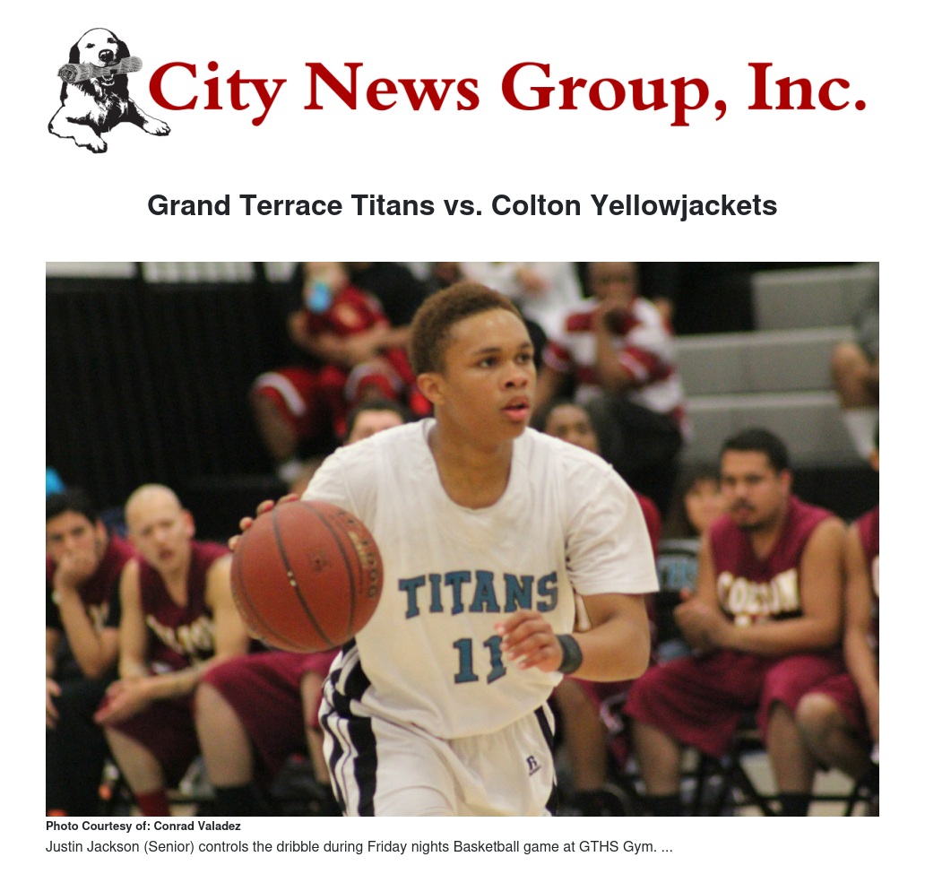 This past Friday, February 7, the Grand Terrace High School Varsity boys Basketball team played in a Sunkist league game against their league rival, Colton Yellowjackets. This was a home game for our Titans and was played at the GTHS gym. The game was a back and forth affair as Colton was trying to avenge an earlier loss to Grand Terrace last month in Colton 62-60. Both teams played with a lot of determination to defeat each other. The Titans prevailed in the game by a score of 53-52. Grand Terrace has only been competing in a Varsity level sport for 2 seasons and are starting to become a factor in the Sunkist league.