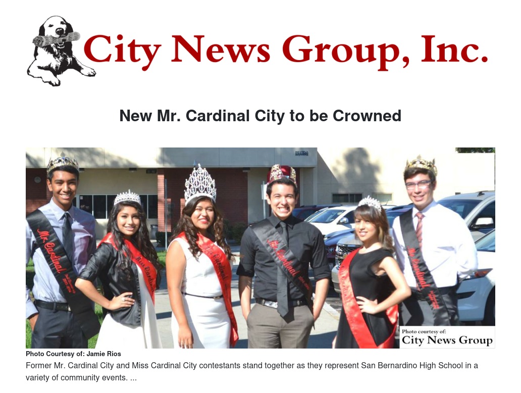 “Mr. Cardinal spreads good will and shows the community the caliber of students attending San Bernardino High,” pageant coordinator Jamie Rios said. “And, every Mr. Cardinal gains valuable experience and gives back to his school and community.”