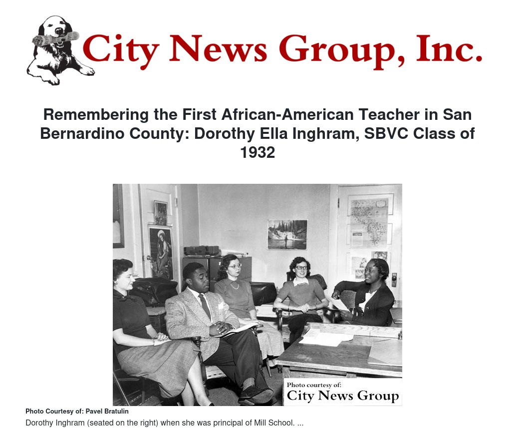 Remembering the First African-American Teacher in San Bernardino County: Dorothy Ella Inghram, SBVC Class of 1932