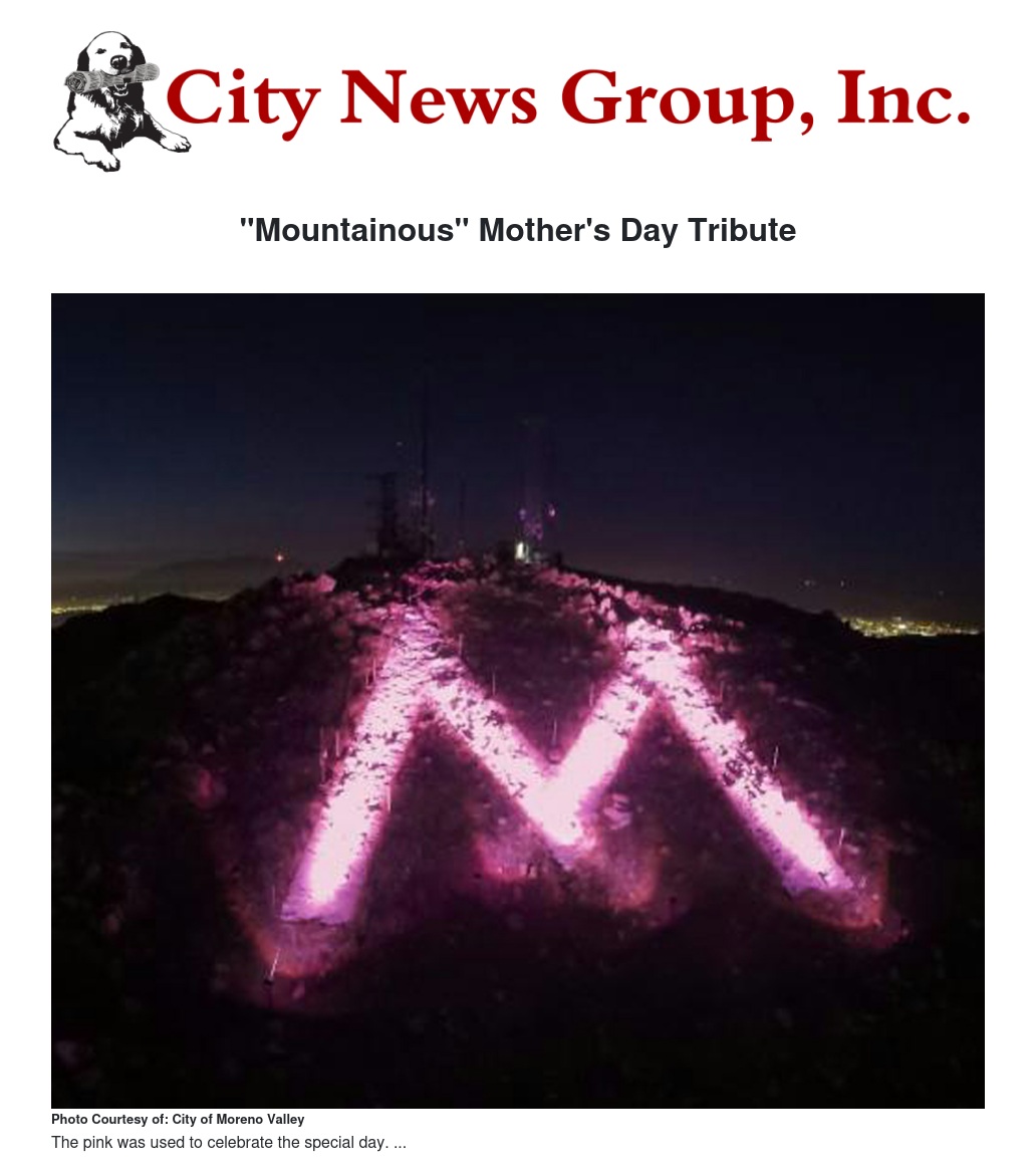 "Mountainous" Mother's Day Tribute by City of Moreno Valley - City News Group, Inc.