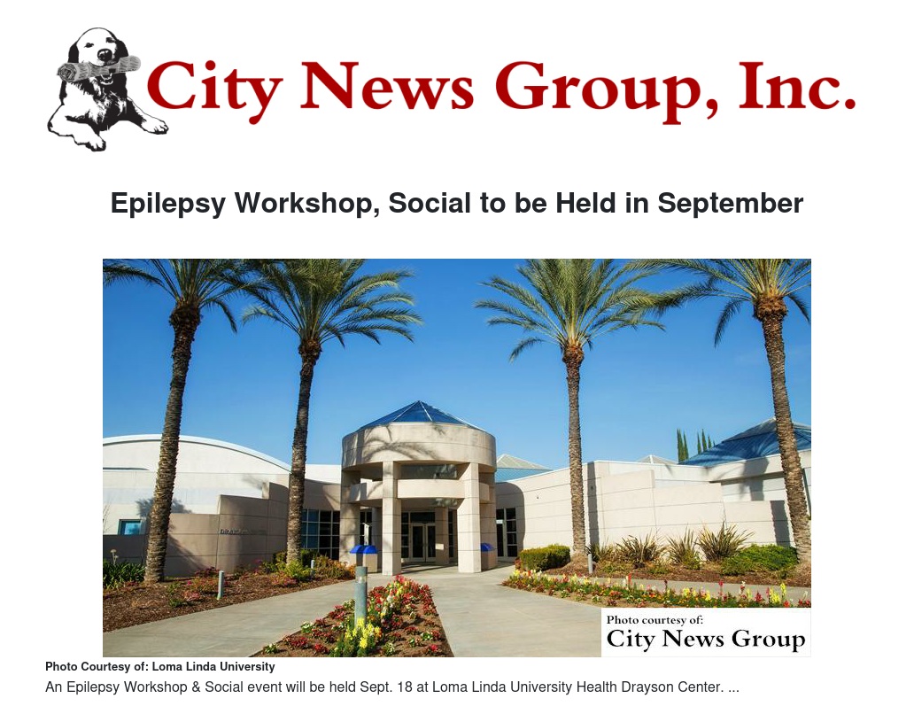LOMA LINDA>> Individuals and families who have been affected by epilepsy are invited to attend the Epilepsy Workshop & Social event Sept. 18, from 10 a.m.-3 p.m. at Loma Linda University Health Drayson Center, located at 25040 Stewart Street, Loma Linda.