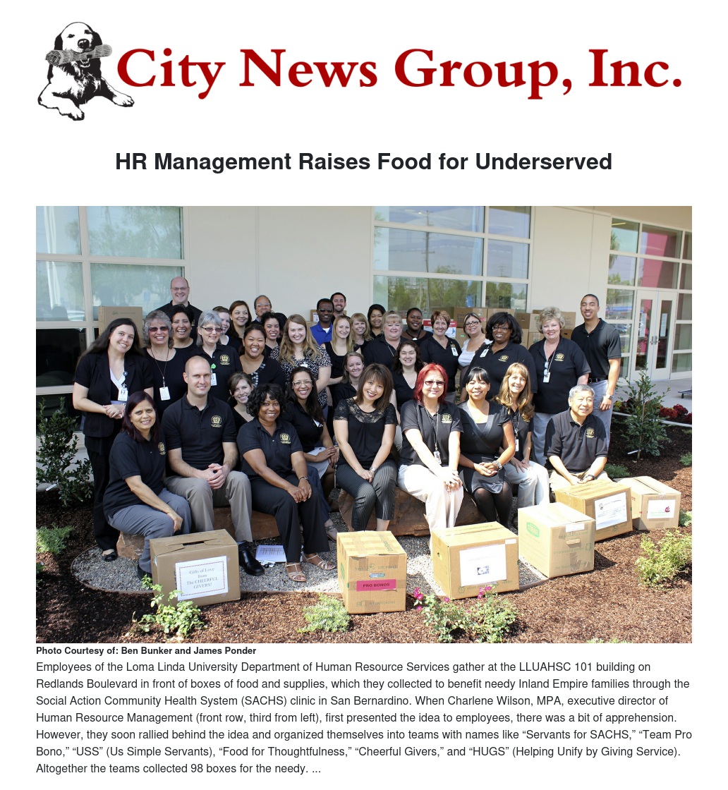 When Charlene Wilson, MPA, executive director of Human Resource Services at Loma Linda University Shared Services, toured the Social Action Community Health System (SACHS) Clinic in San Bernardino, what she saw touched her heart. Wilson started wondering how her department might help SACHS meet the needs of the underserved.