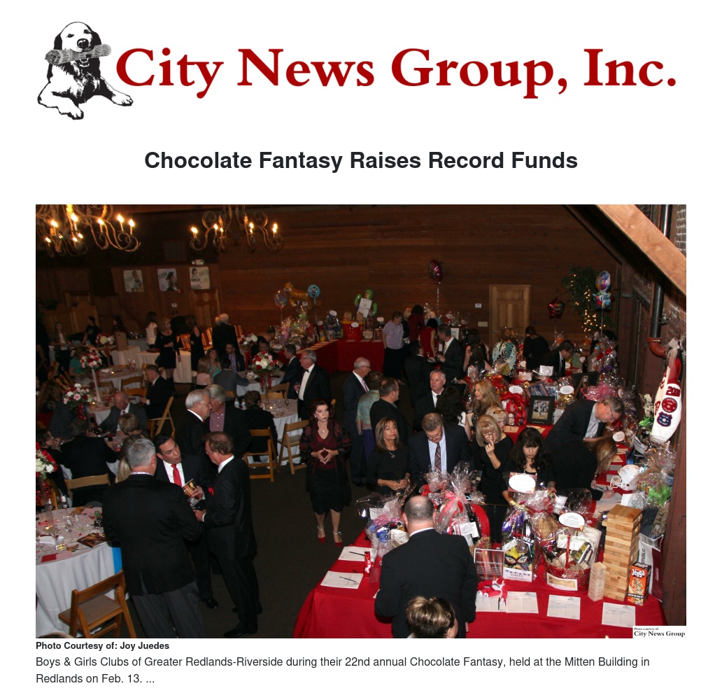 Boys & Girls Clubs of Greater Redlands-Riverside’s Chocolate Fantasy event on Feb. 13 raised more than $106,000, the most in the event’s 22-year history.