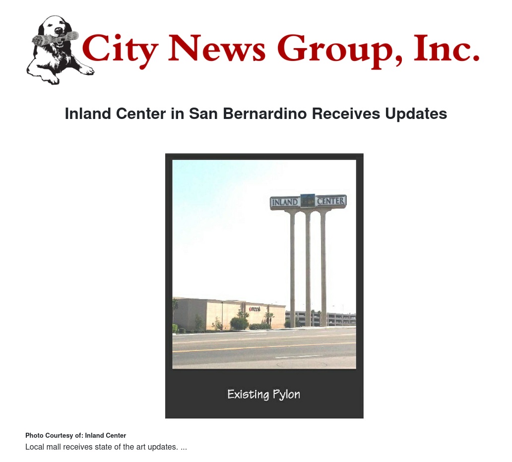 While the new outdoor signage certainly will appeal to shoppers, it also provides a tangible benefit to our retail and major partners that more than ever value prime placement and positioning at key properties, like Inland Center. Great experiences matter to shoppers and retailers today, which is why our refresh also includes welcoming new common area furnishings, remodeled restrooms and a variety of other amenity updates all of which will be complete in stages over the next three months. Construction on the I-215 freeway pylon sign is underway and is expected to be unveiled in August.”