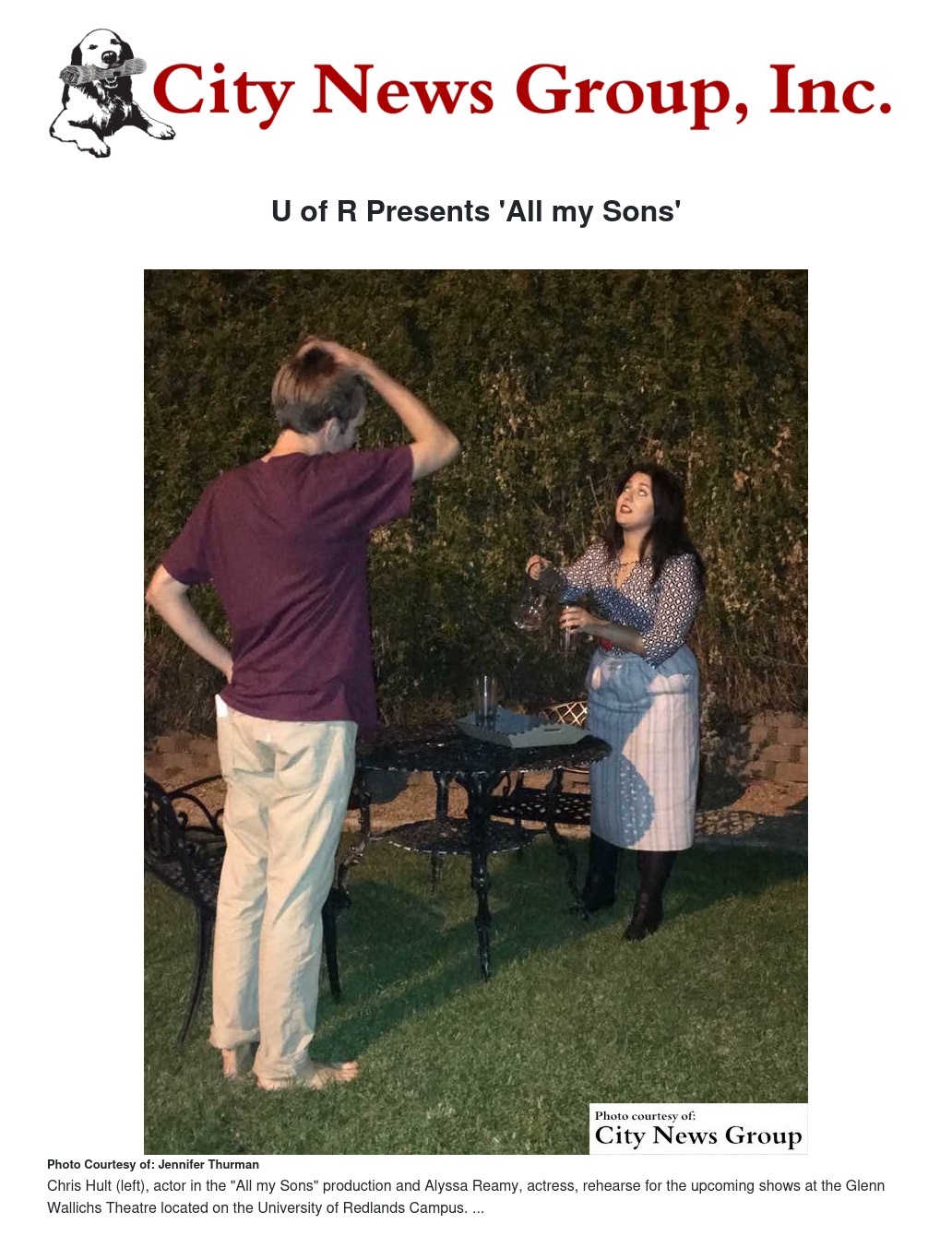 REDLANDS>> The University of Redlands Theatre Arts Department will present the American classic “All my Sons” by Arthur Miller during two weekends in November.