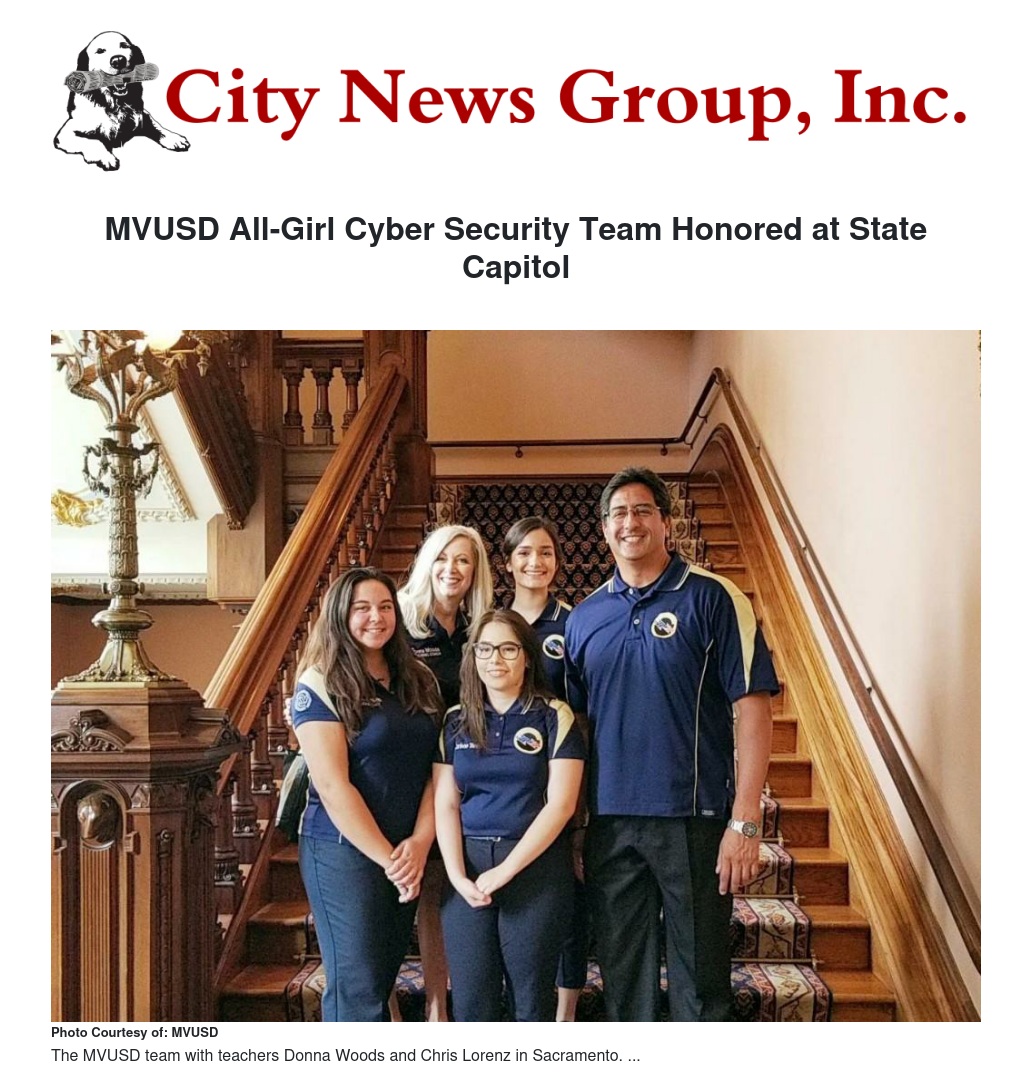 MORENO VALLEY>> The all-girl cyber security team was recently recognized again for its achievements. They have received many accolades in the past. This time their recognition came from the floor of the State Assembly and Senate in Sacramento.
