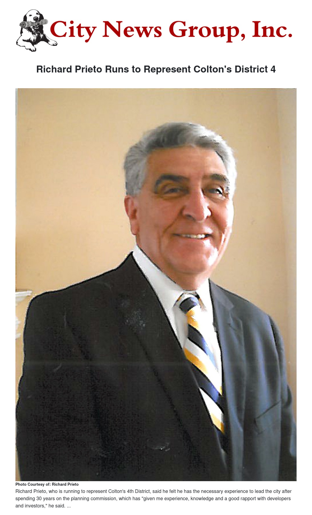Prieto's primary goal is for all residents to feel a strong sense of community, whether you are a lifelong resident or brand new to the city. Please support him in making Colton the best place to live, raise your family and cultivate overall growth.