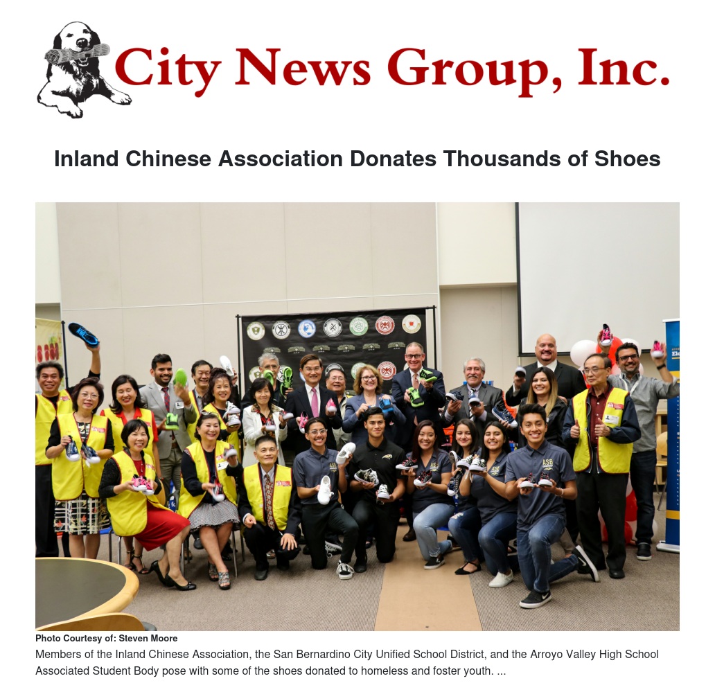 The Inland Chinese Association officially presented 4,000 pairs of new shoes for homeless and foster youth in the San Bernardino City Unified School District (SBCUSD).