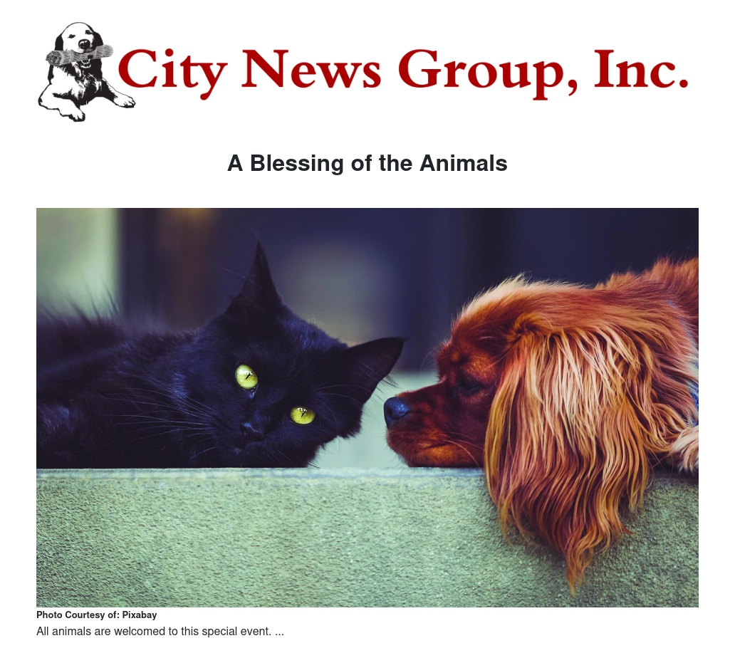 The service will feature prayer, readings, and music. Prayer will also be offered for the families of pets who have passed away, as well as all living animals.