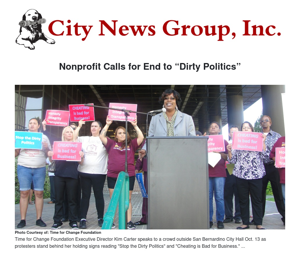 The executive director of a nonprofit that finished first in an open bidding process for an affordable housing project in San Bernardino was joined Oct. 13 at City Hall by supporters demanding an end to what they called “dirty politics” and “cheating” in business.