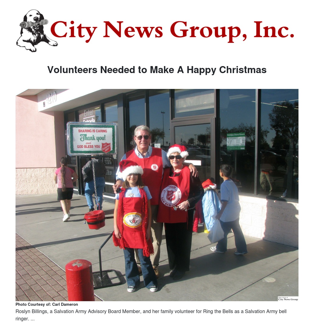 To volunteer, or if companies who want to donate the staffing of a location to Ring the Bells and help the needy this holiday season, call Lt. Cathie McCulley at The San Bernardino Salvation Army at (909) 888-1336.