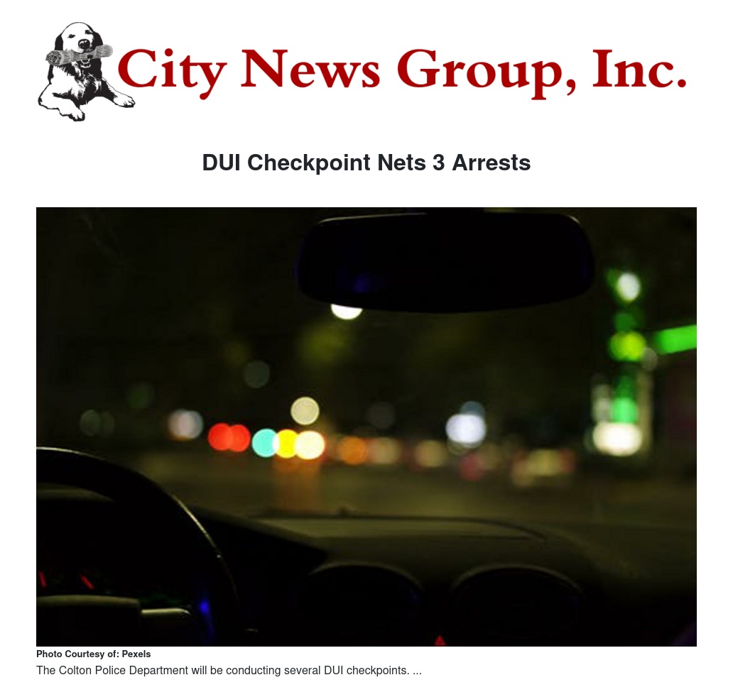 The Colton Police Department DUI/Driver’s License checkpoint netted the following results:
