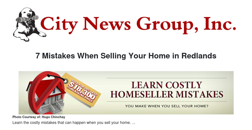 Redlands - A new report has just been released which reveals 7 costly mistakes that most homeowners make when selling their home, and a 9 Step System that can help you sell your home fast and for the most amount of money.