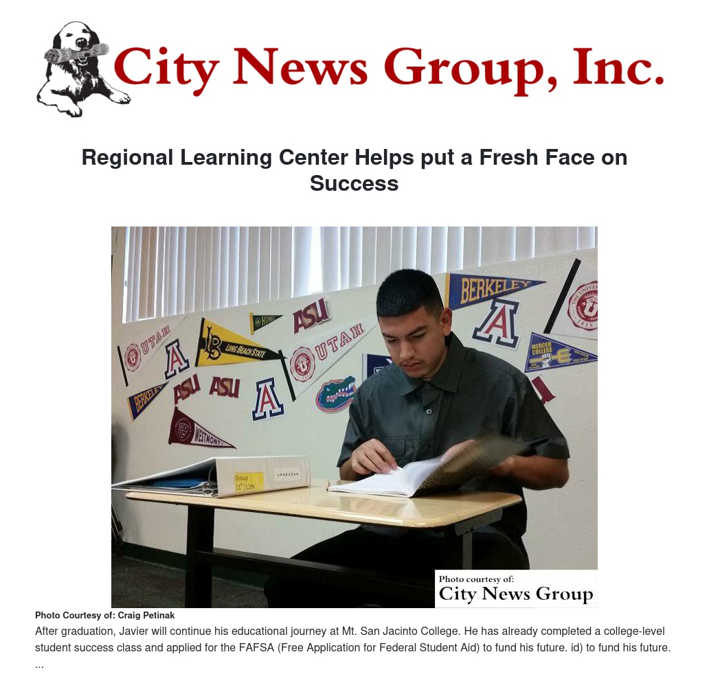 Shawna Guerriero, a teacher at Riverside County Office of Education’s Betty Gibbel Regional Learning Center in San Jacinto, first met Javier when he was in the 8th grade when he hadn’t yet decided to get serious about changing the trajectory of his life.